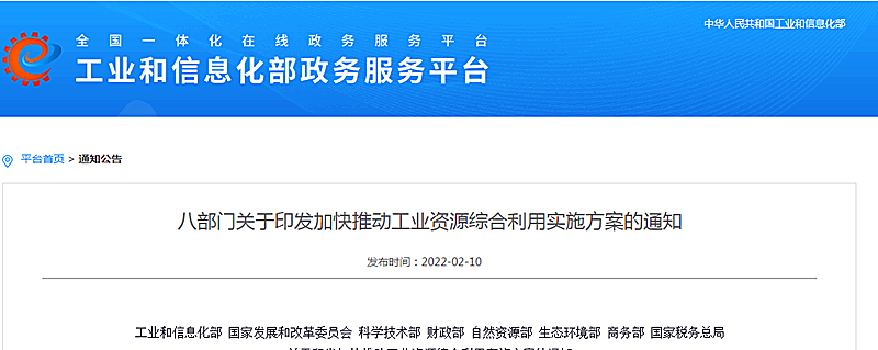地大熱能地?zé)?多能互補(bǔ)網(wǎng)訊:2月10日,工業(yè)和信息化部、國(guó)家發(fā)展和改革委員會(huì)、科學(xué)技術(shù)部、財(cái)政部、自然資源部、生態(tài)環(huán)境部、商務(wù)部、國(guó)家稅務(wù)總局等八部門聯(lián)合印發(fā)了《關(guān)于印發(fā)加快推動(dòng)工業(yè)資源綜合利用實(shí)施方案的通知》(下文簡(jiǎn)稱《通知》)。