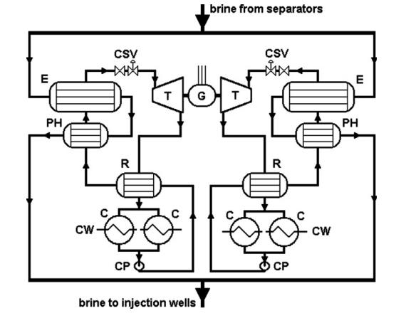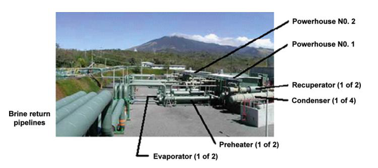 米拉瓦列斯的五號發(fā)電機(jī)組是2004年剛投入使用的。這個發(fā)電機(jī)利用從一號和二號和三號發(fā)電機(jī)組中的廢棄鹵水,通過注入井來獲取了可能回到熱儲層中的能量。總共的發(fā)電量是15.5MW,發(fā)電機(jī)組中的每一個發(fā)電單元都發(fā)出7.75MW的電。每一個發(fā)電單元是有兩個渦輪組成的,驅(qū)動同一個發(fā)電機(jī)。循環(huán)工質(zhì)是常規(guī)的正戊烷,C5H12。每一個單元用兩個預(yù)熱器。兩個蒸發(fā)器跟他們各自的分隔板。兩個回?zé)崞鳎膫€水冷凝器。這個發(fā)電機(jī)組是有澳瑪特(Ormat)提供的。