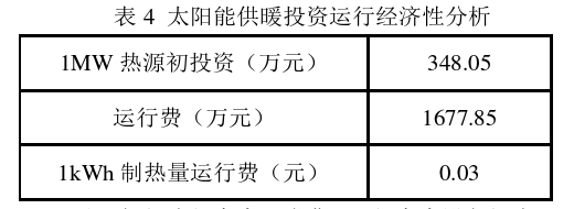 根據(jù)《太陽(yáng)能供熱供暖工程技術(shù)規(guī)范》 (GB50495-2019),在寒冷地區(qū)太陽(yáng)能供暖系統(tǒng)須采用間接供暖系統(tǒng)。太陽(yáng)能間接供暖系統(tǒng)用于集中供暖熱源投資運(yùn)行經(jīng)濟(jì)性分析詳見(jiàn)表4: