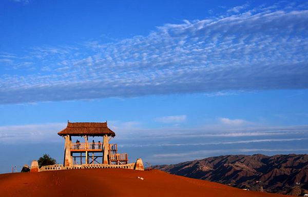特殊的地理環(huán)境孕育了豐富的旅游資源,在這里,可以看到極具歷史積淀意義的4公里長(zhǎng)的明代古長(zhǎng)城遺址的宏偉景觀;可以站在湖畔觀賞著多達(dá)15種的沙漠生態(tài)魚和136種鳥類,其中黑鸛、大天鵝、金雕分別屬于國(guó)家一、二級(jí)保護(hù)動(dòng)物;可以在水上樂(lè)園與湖水親近;可以在遼闊的沙漠草原中縱情馳騁、在金沙島紫色的花海中徜徉;可以在永安寺里尋找片刻的寧?kù)o,在五彩池畔與荷花仙子心靈神匯。騰格里湖沙漠濕地旅游區(qū)溫泉猶如沙漠里的藍(lán)色水晶,如詩(shī)如畫的旖旎風(fēng)光,看著格外悅目。