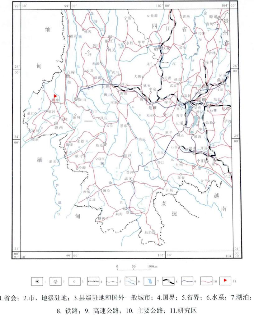 圖1 云南騰沖縣地理位置圖 2.項(xiàng)目區(qū)地質(zhì)背景 騰沖縣位于高黎貢山西側(cè),總體地勢(shì)北高南低,山脈走向?yàn)楸睎|一西向及南北向,與區(qū)域構(gòu)造線基本一致。高黎貢山與怒江并列向南蜿誕,高黎貢山峰脊一線海拔多在3000m以上;而怒江河谷海拔僅500—900m,區(qū)內(nèi)最高峰為高黎貢山中段的大腦子,海拔3780.9m;最低點(diǎn)為盈江縣拉沙河與穆雷江交匯處,海拔僅210m;最大高差達(dá)3570.9m,一般高差在400—2000m之間,屬中高山中一深切割地區(qū)。縣城西側(cè)為高中山地貌景觀,谷深坡陸;東側(cè)為中山山地稍為平緩,但切割密度較大;中部為斷陷谷地,河流階地發(fā)育,地勢(shì)平坦開闊。騰沖地區(qū)構(gòu)造運(yùn)動(dòng)活躍、斷裂構(gòu)造發(fā)育、巖漿活動(dòng)頻繁、火成巖分布廣泛、新生代火山活動(dòng)、現(xiàn)代水熱活動(dòng)異常強(qiáng)烈,溫沸泉眾多。
