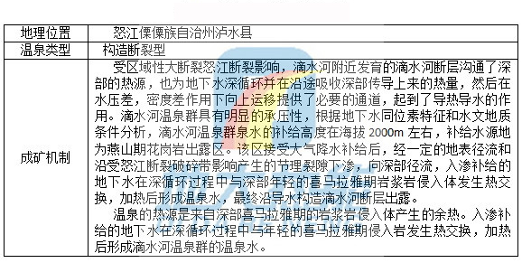 云南滴水河溫泉風(fēng)景滴水河溫泉以泉群形式出露,出水點(diǎn)散布于滴水河河床及河漫灘上,地表為第四系礫石、砂等沖洪積物覆蓋,滴水河溫泉出露特征高程與躍進(jìn)橋溫泉和瑪布河溫泉不同,其出露高程為1502.3m,相對(duì)較高。