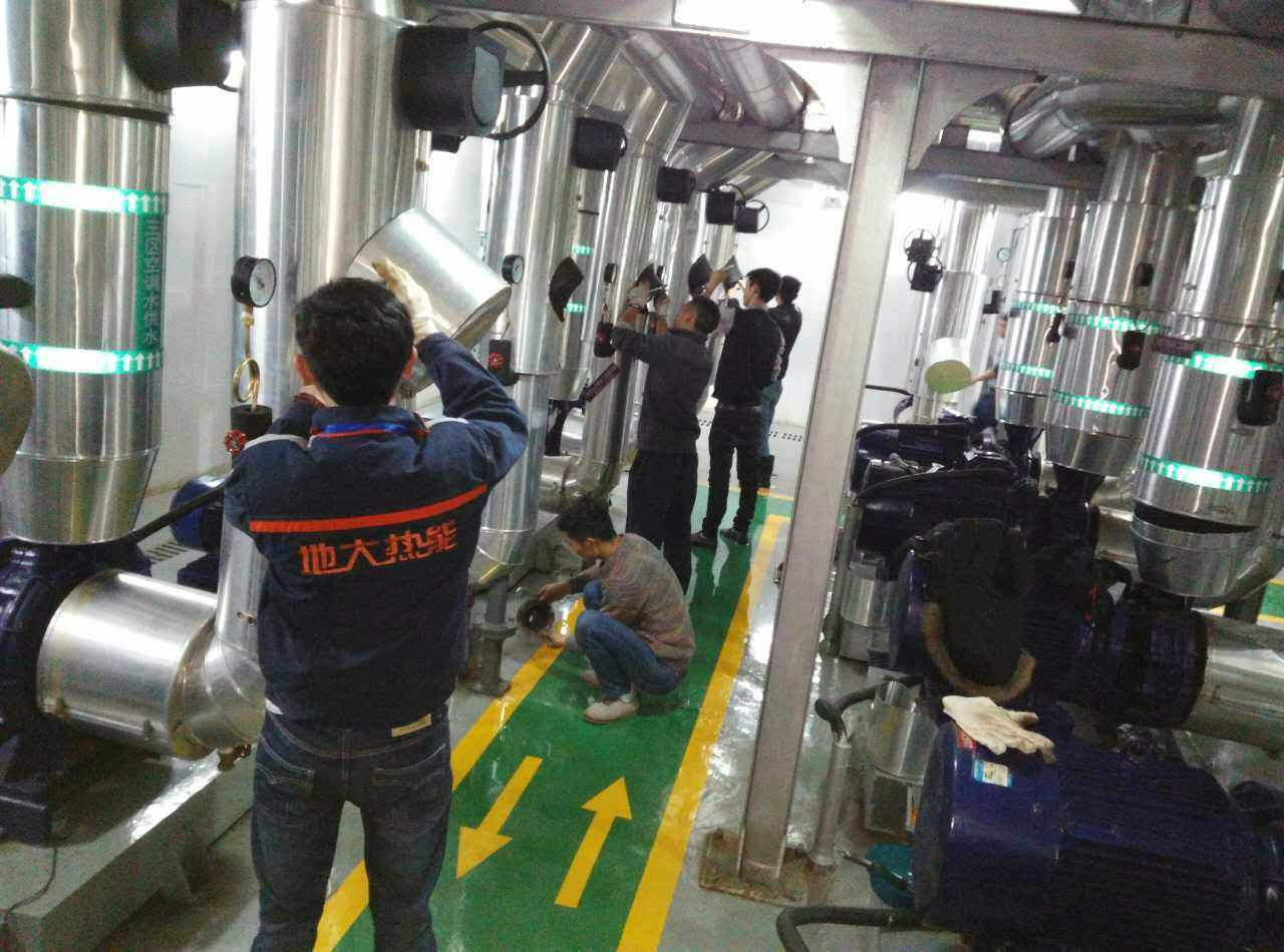 湖北地大熱能地源熱泵運維團隊由20名專家、技術(shù)人員組成,技術(shù)、施工項目經(jīng)驗豐富,在了解貴陽財大花溪校區(qū)運行了三年的地源熱泵系統(tǒng)所出現(xiàn)的問題后,經(jīng)過重新的地?zé)峥辈?/a>、評估,分析地下熱量、冷量傳輸與地上熱泵系統(tǒng)的各個環(huán)節(jié),找到問題癥結(jié),進行專業(yè)維修,并擬定長期維護計劃,改善項目系統(tǒng)的運行環(huán)境,提高供暖與制冷的效果。